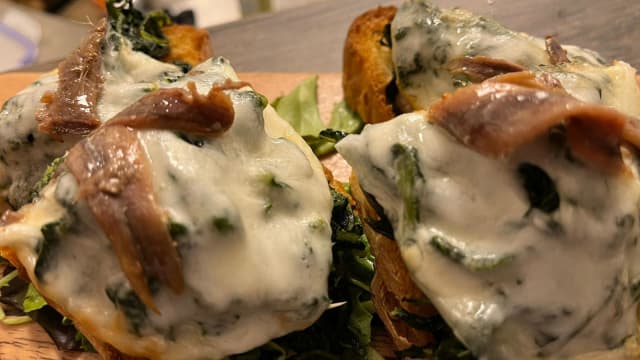 Crostone goloso con caciocavallo silano dop, cicoria e alici