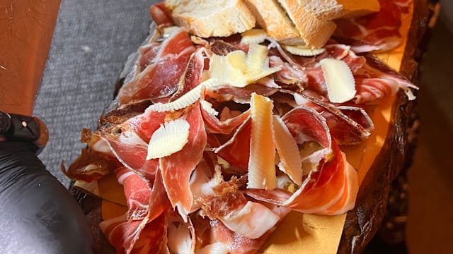 - Panino di grano tenero, con paletta di prosciutto iberico e stracciatella
