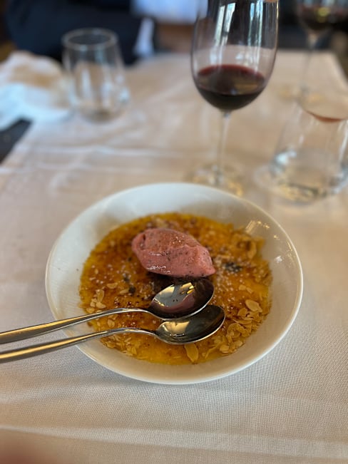 7.5/10The view from the terrace on the monastery cathedral is amazing. The food was classic the mushroom starter was very good. The staff is friendly and all covid measures are met.