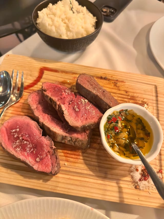 5/10Even though there were only two tables, it took over 30 mins to serve us — and we specifically avoided the dishes that were marked with 20-30 minutes prep time. We were 5 people, two of our dishes—the steak and the pig cheek—were quite good, but the hamburger tasted weird, and the fish and pasta were underwhelming. Nothing wrong with anything, but we expected much better for the price.