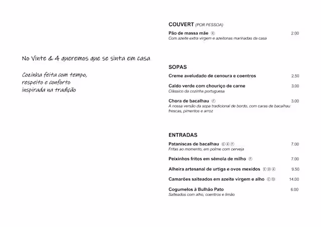 Vinte & 4Thank you very much for your reservation and for the 9.5/10 rating! We’re delighted to know that you enjoyed our menu and the traditional fisherman recipes — we prepare them with great care and respect for local flavors. We hope to welcome you back to Vinte & 4 on your next visit to Aveiro.