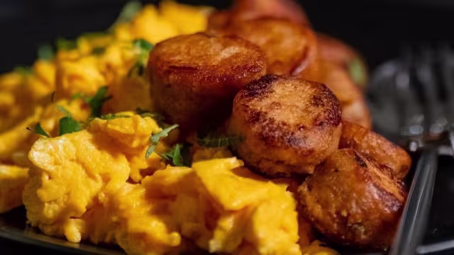 - Alheira artesanal de urtiga e ovos mexidos