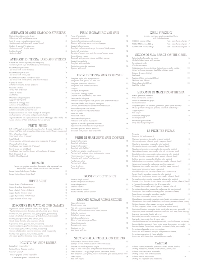 8.5/10Virgilio is geared towards tourists but we still enjoyed. The ambiance next to the square with usual live music was great. Our service was quick and our server threw in a limoncello shot at the end. If you don’t have a reservation and need somewhere in a pinch, Virgilio will get provide a good experience!
