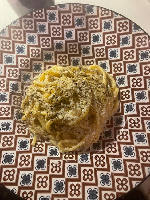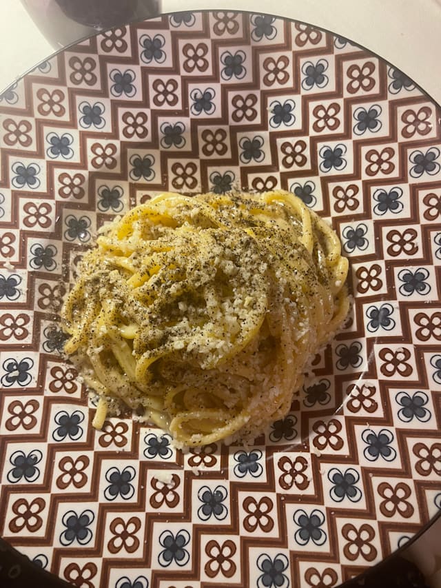9/10Both of my sons had eaten here while on vacation in past years and when they knew I was in Rome sent me all the information I needed to find this place, what to order and even how to pronounce it! I ordered the Cacio e Pepe and tiramisu for dessert and was not disappointed. While the service was slow our waiter was jovial and pleasant.