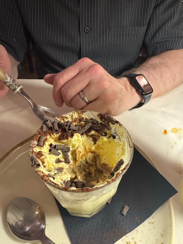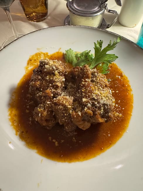 10/10My husband & I shared the fried zucchini flower with cheese and anchovy for appetizer as well as their delicious pasta gricia. He had the trippa alla Romana which he said was probably the best he’s ever had. I had the oxtail Roman style which was falling off the bone. We also had a tiramisu and a bottle of Chianti, both we thoroughly enjoyed. We would love to go back again before we leave Rome.