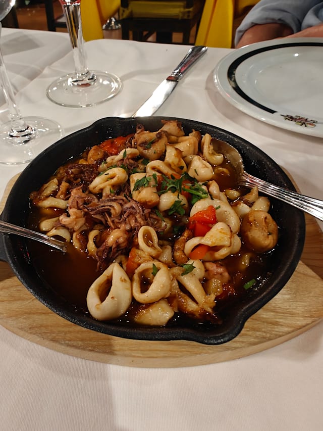 10/10We had squid and prawn on a spit and monkfish on a spit, really fresh and delicious. One criticism, we were served an excessive amount of bread! When we arrived there was a basket of bread and butter on the table and then another plate of buttered toast arrived, TOO MUCH BREAD, otherwise the meal was fine and the wine delicious.