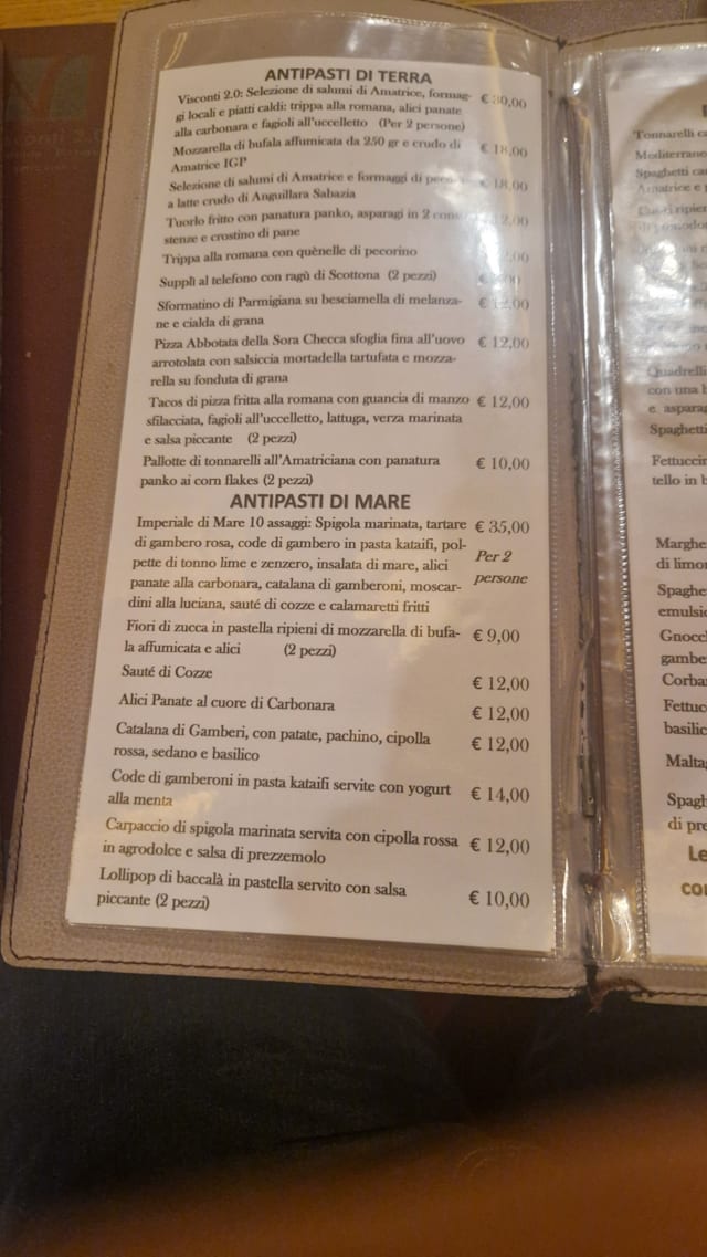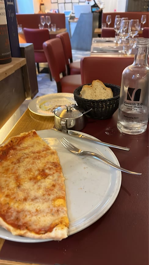 10/10Fabulous food and service! The menu goes far above and beyond pizza. I had the Sea Bass Roland with Crispy Vegetables - beautifully prepared and presented, and delightfully delicious. My colleague had the Veal Saltimbocca, served with herbed potato slices, also skillfully prepared and delicious. Raj, our knowledgable and friendly server, helped us choose an excellent wine from the extensive wine list. We have had the pleasure and privilege of dining at Michelin star and other recognized restaurants in Chicago, New York, San Francisco, LA, New Orleans, Paris, Vienna - over the years. Visconti 2.0 ranks among the best with its innovative menu and inspired preparations of fresh, seasonal ingredients, attentive service and curated selection of the best wines from regional “Cantinas,” and is very reasonably priced. We are returning to Rome soon and are looking forward to tasting more items on the menu. Highly recommend!