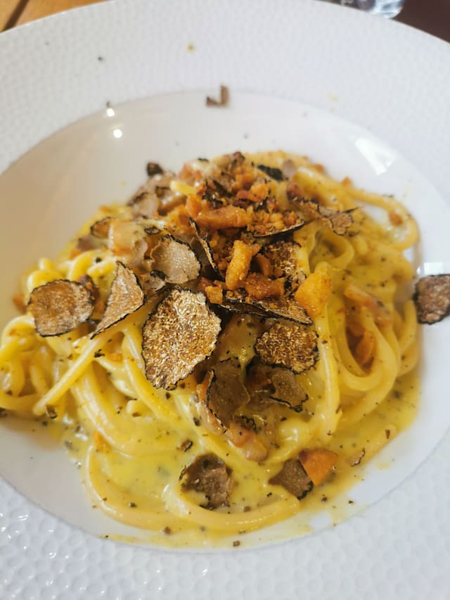 9.5/10Enjoyed a delicious meal while sitting outside enjoying a beautiful summer day. There were 6 of us and no one was disappointed with their meal choice. Truffle carbonera, grilled octopus, ravioli with truffle sauce, spaghetti carbonara, and cacao Pepe were yummy. House wine was excellent!