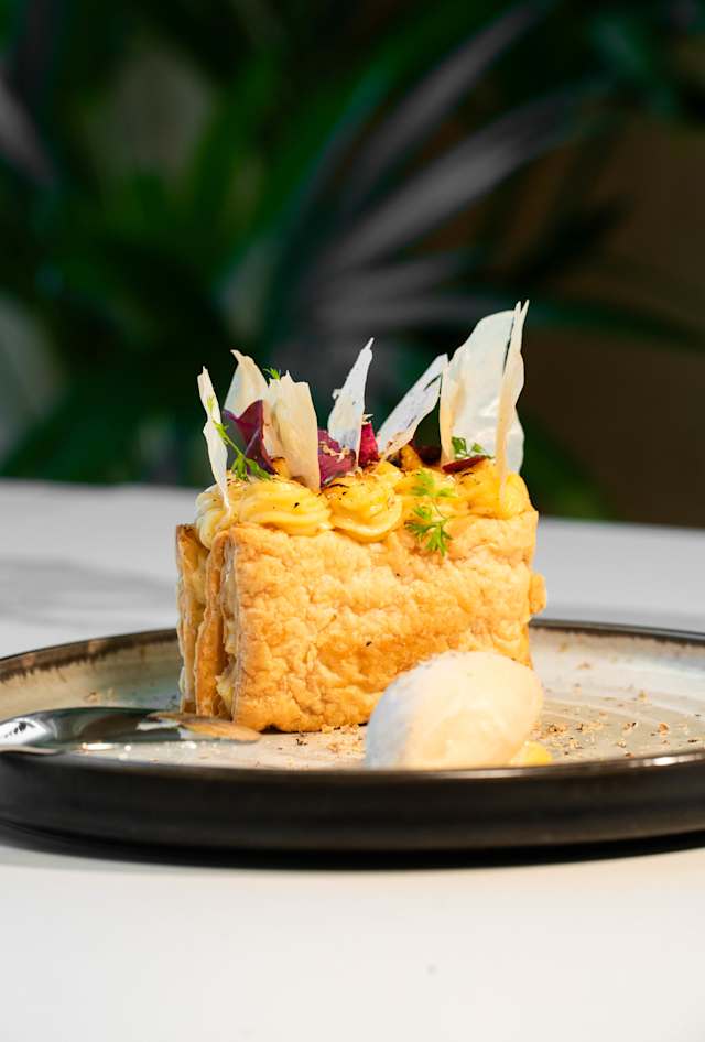 - Brioche, baunilha, compota de cebola roxa e Vinho do Porto