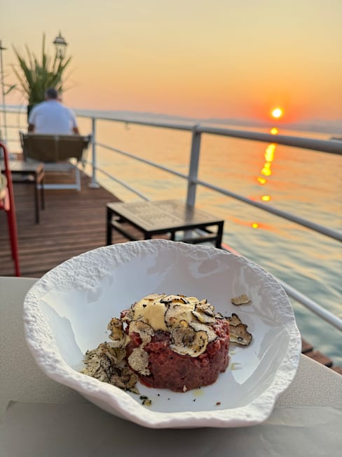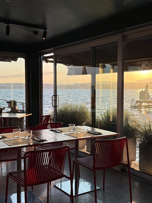 8.5/10Great location and amazing food, all in all probably the best value for money I've seen in Sirmione. Watching the sunset while eating these amazing dishes was such a great experience! Only negative point is the service: while waiters were very friendly and nice to customers, they lacked any organisation or structured approach. They forgot our drinks, never picked up empty cocktail glasses from the table, didn't ask us to taste the wine, had to ask us whether we had a second course and at the end even lost track of what we ordered so that we had to tell them what we ordered to be able to pay. The surprise the day after was even to find out that they hadn't signalled to The Fork that we used our reservation.
