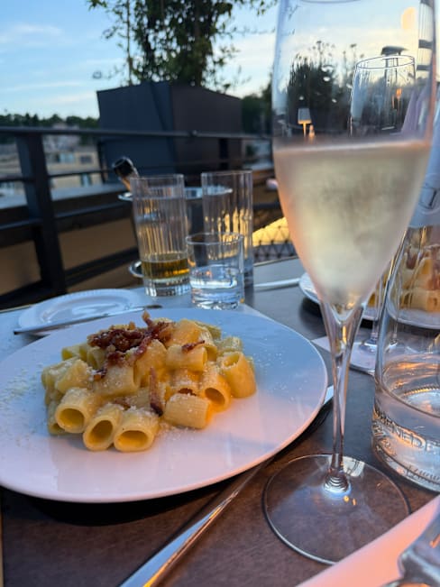 8/10Beautiful setting and views over Rome. The service was a bit slow and at times the waiter seemed overwhelmed and frantic. Delicious carbonara pasta.