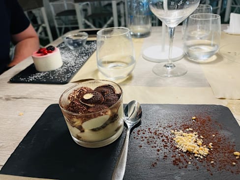 10/10Perfect sea food restaurant on the beach front . Brilliant food - every course and sparkling wine was first class . Recommend it . Our second visit in our week at Formia .