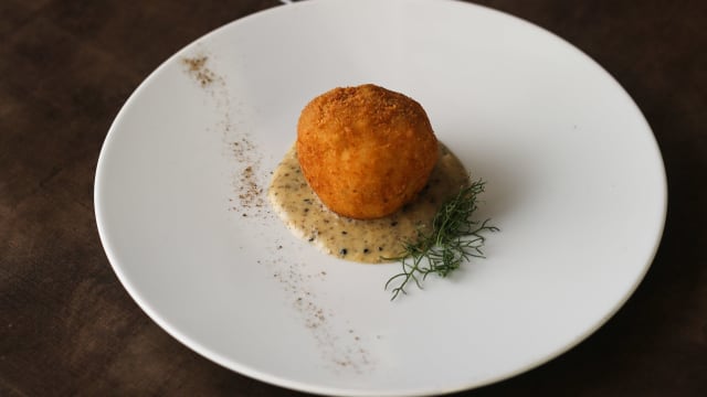 - Arancino “acquarello” con normanno e tartufo nero delle langhe
