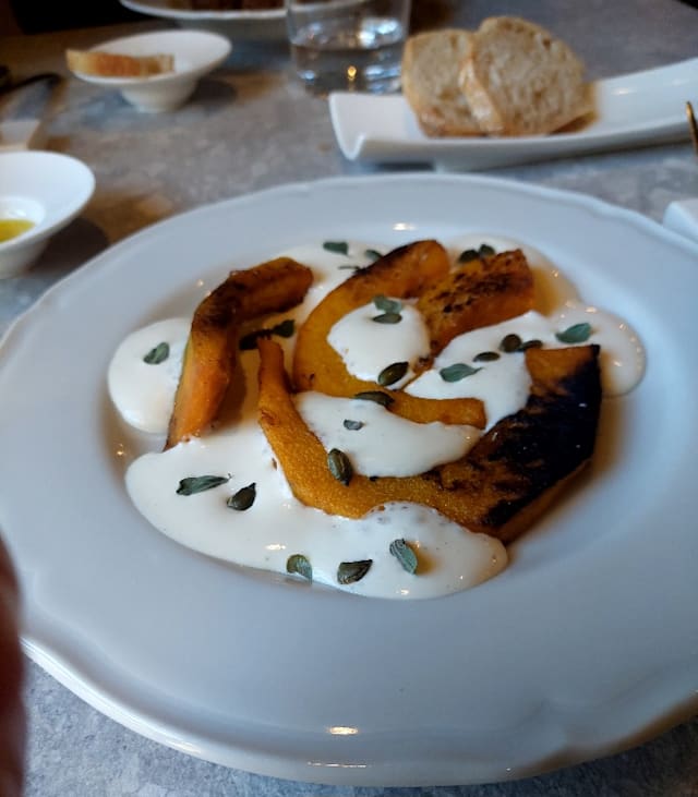 - Trota affumicata al fieno, zucchine, menta e aceto, panna e cipollotto