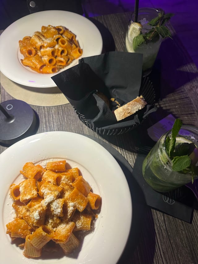 8.5/10Service is great, friendly and quick. Pizzas were very good. Pasta came cold with the sauce solidified. Interior is dark, good for lounging, not exactly fitting dining, music outside is too loud.