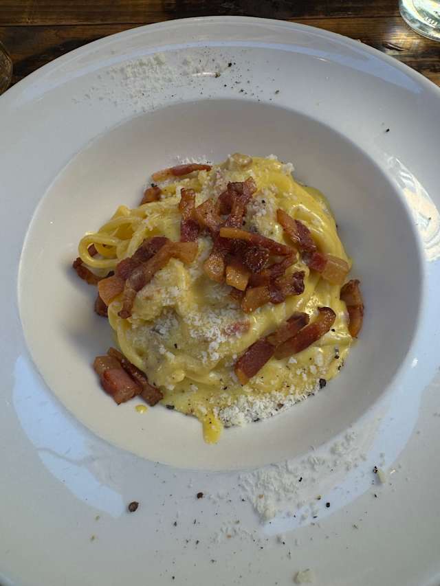 9/10The focaccia was the best I have ever tried, the bruschetta & mozzarella with prosciutto was also delicious. The meatball main course was ok, my daughter had spaghetti carbonara and it was the best she had had. The setting was very idyllic & pleasant. We left scratching our heads as to why there were hardly any customers! Great restaurants - needs more customers to avoid going out of business! Thank you to the staff for a great evening.