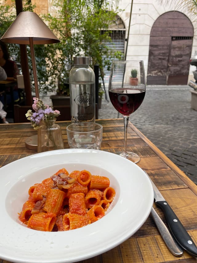 10/10+4We discovered this gem of a restaurant during our first trip to Rome in November 2024. Vitti Osteria & Cantina was such a wonderful and memorable dining experience that we booked another dinner here during our one night in Rome in March 2025. Our son joined us for our second trip to Italy, and we wanted him to experience this lovely place. The proprietor remembered us and gave us a complimentary champagne toast. The service is wonderful and welcoming, the food delicious and authentic, and the atmosphere warm and inviting. The prices are very reasonable as well. We sat at our favorite table in the kitchen and felt like we were dining at a friend's house. After the meal, we enjoyed some limoncello provided by the kind proprietor who would visit our table throughout our meal to chat with us. Vitti Osteria is an absolutely lovely place! I HIGHLY recommend!
