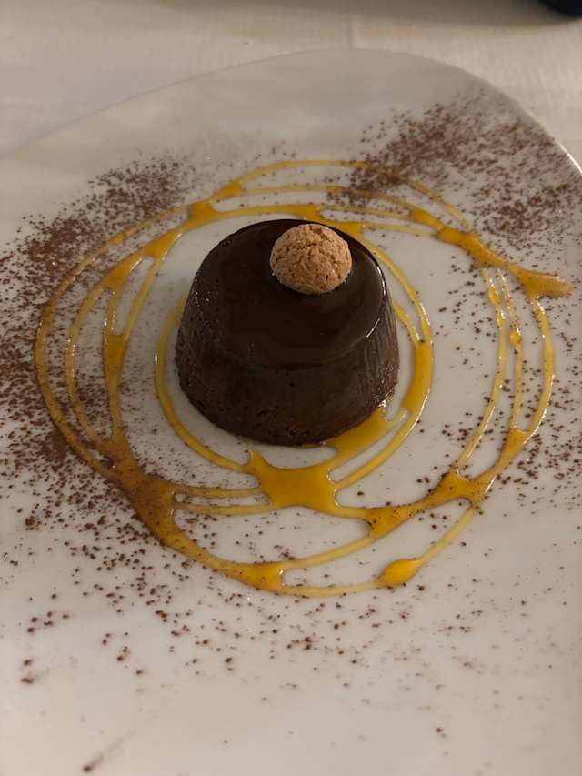 10/10Our bike tour provider recommended this lovely spot. We are not foodies, but it was an incredible meal on the terrace. Service was attentive but not overbearing. The ravioli with sage for a first course was scrumptious. Usually I pass on the breadsticks but these were delicious. The salmon entree was accompanied by perfectly cooked vegetables. The Bunet , a regional specialty, was amazing. Great meal, romantic evening, wish we were going to be in town longer.