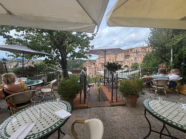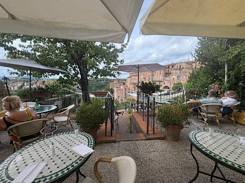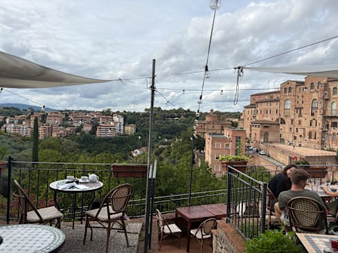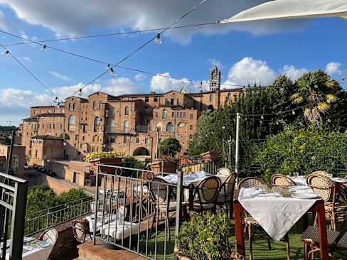 8.5/10A corner of paradise hidden among the alleys of Siena. A secret garden with a breathtaking view. A varied menu, delicious, beautifully presented food, and a wide selection of wines. Very friendly staff and a comfortable atmosphere. I highly recommend it, even for an aperitivo.
