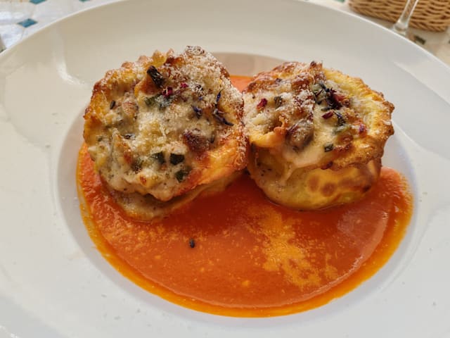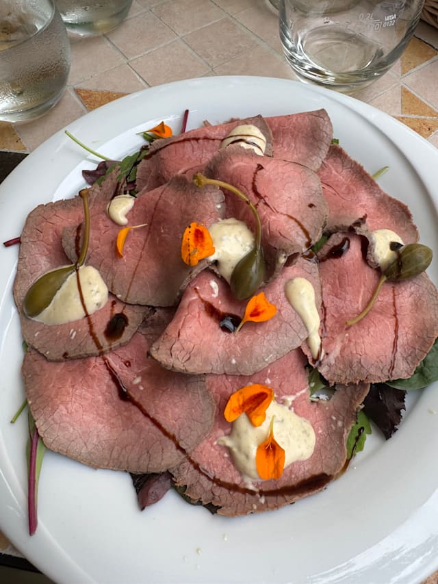5/10The setting and view were beautiful! The restaurant had about 10 tables seated throughout the time we were there, with at least 5 servers covering. While the wait staff were pleasant, they seemed disorganized, brought food to the wrong tables, and corrected each other in front of guests. This was all fine, but our food was incredibly disappointing. Very overcooked duck and steak, both clearly cooked directly from frozen. Sad frozen spinach served as an a-la-carte side (extra disappointing because fresh spinach was in season). Mashed potatoes were overpowered with fake tasting truffle oil. The best thing we had was the tartare, you could taste the really good olive oil they used. However, the oil brought to the table with the bread was cheap basil infused oil from a tourist shop. I'm from the USA and haven't had a meal as bad as this in years. I'm sad because I ate here about 9 years ago and had some of the best pasta of my life. Now they don't care anymore, I wouldn't go back.