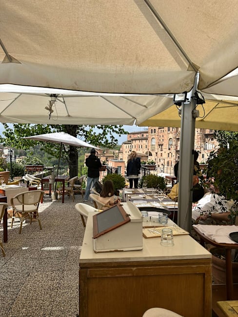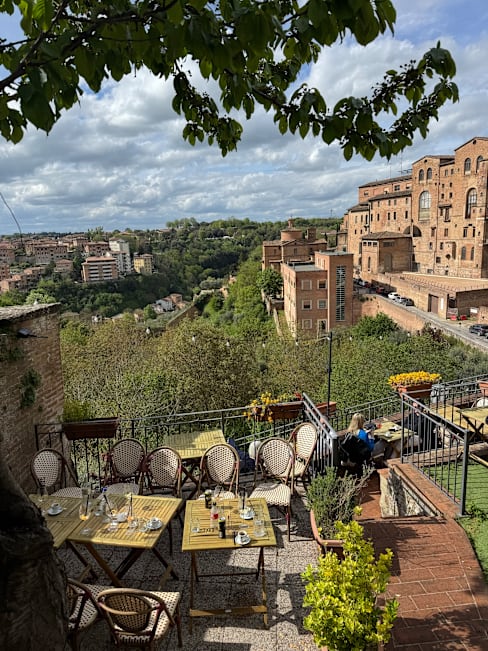 8.5/10A corner of paradise hidden among the alleys of Siena. A secret garden with a breathtaking view. A varied menu, delicious, beautifully presented food, and a wide selection of wines. Very friendly staff and a comfortable atmosphere. I highly recommend it, even for an aperitivo.
