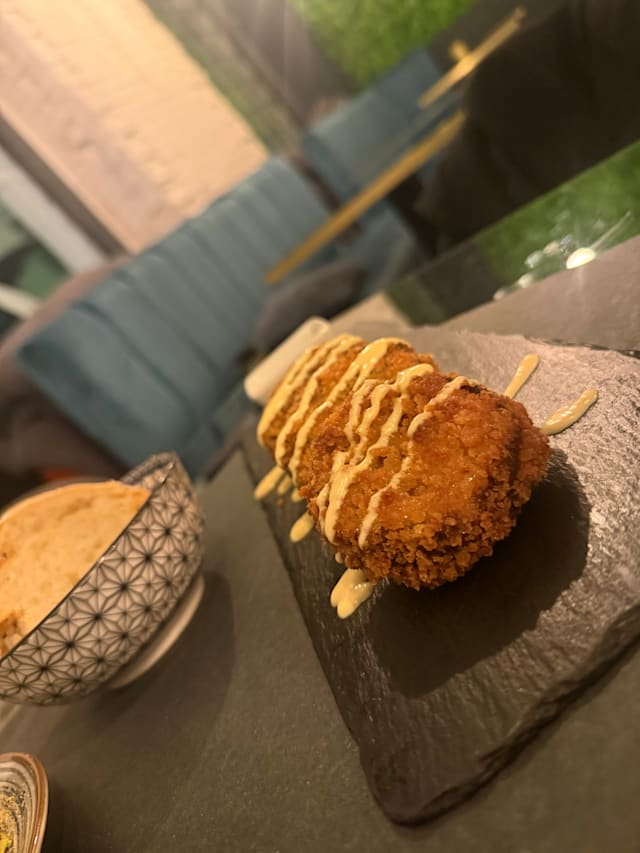 •Patate e zucchine semi di sesamo panatura al panko salsa peperone chilly