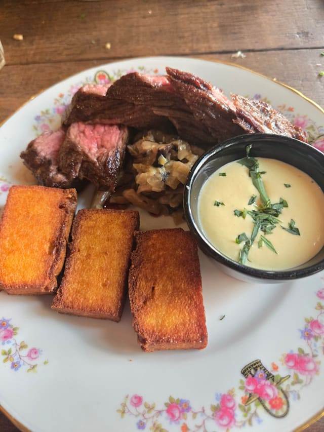 8/10This is such a nice neighbourhood place with a big terrace outside. The menu is not very large but the quality of the food is really very good. We had the steak tartare which was super followed by the bavette, and pasta and chicken. Good sized portions. Homemade applesauce. And with the insane 50% discount on The Fork you can't possible go wrong in terms of the price. Give it a try!