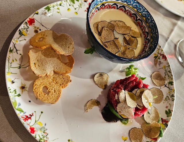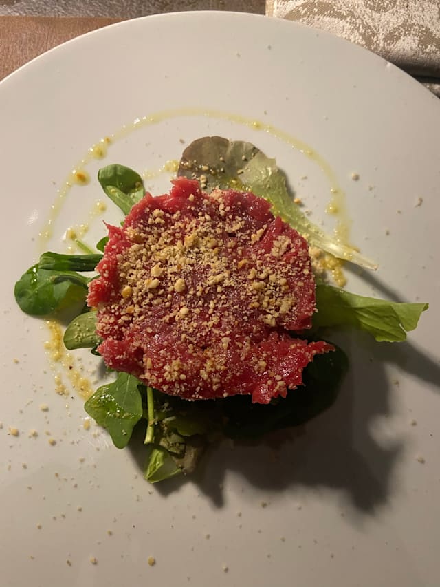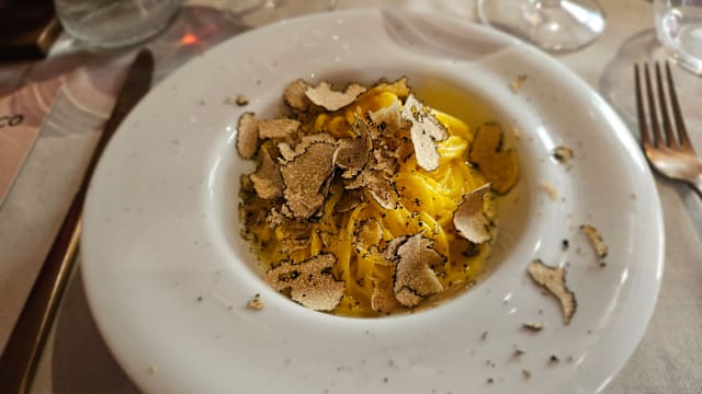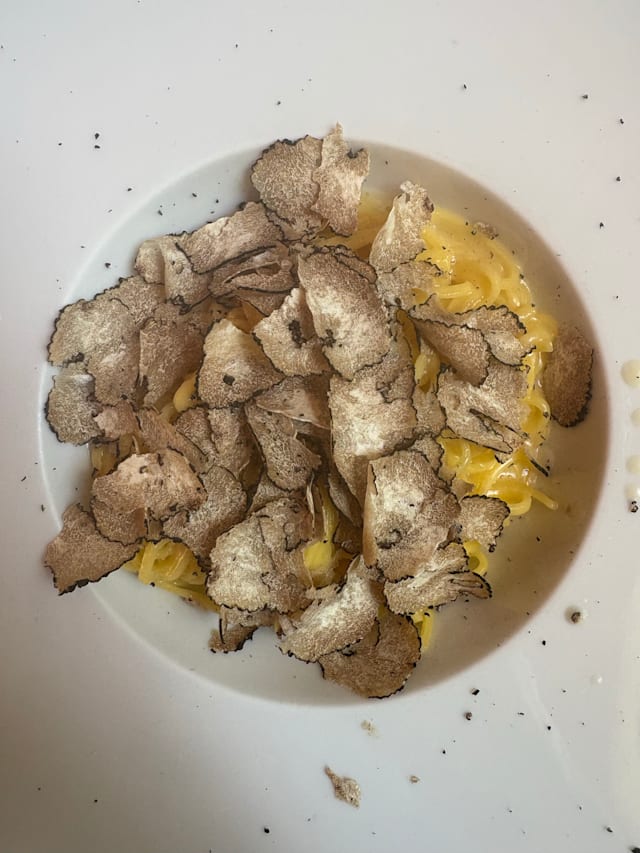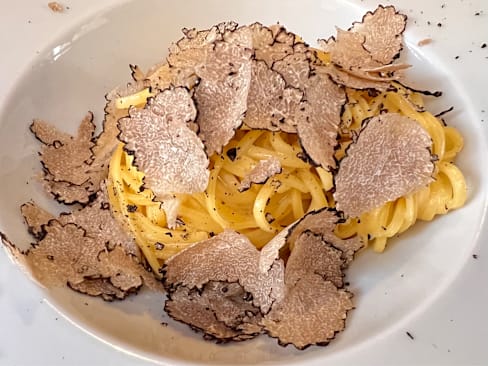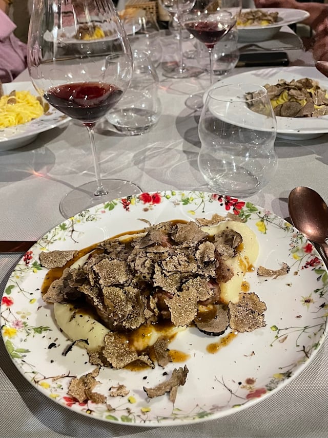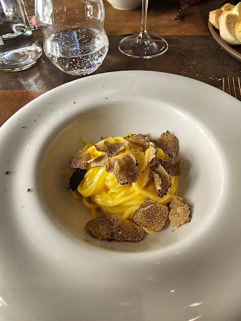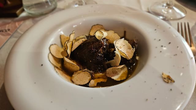 9/10We shared the Battuta di Fassona con Tartufo Bianco as a starter, and while it was ok, it was actually surprisingly bland. My wife’s Guancia di Vitello, Crema di Patate, Tartufo Bianco was also disappointing, as the truffles were so mild they were overwhelmed by the veal(!). My Tajarin al Tartufo Bianco was good, but I had the same dish at another restaurant in town the previous night, and that preparation was FAR better. Wine selection is actually too long to be useful. 41 pages is a tome, not a wine list. The 2018 Scarzello Langhe Nebbiolo was delicious. My wife’s gelato was delicious. Not inexpensive but not unreasonable. ,