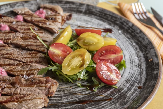Entrecote di scottona (250 gr) con olio al rosmarino e patate al forno