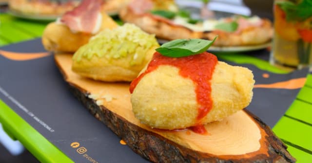 Bombette di pasta di pizza ripiene di provola e prosciutto crudo