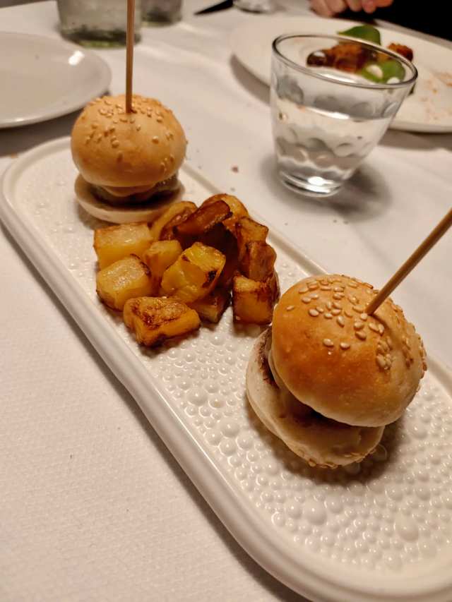 - Mini burger di black angus con scamorza affumicata, mayonese ai 4 pepi
