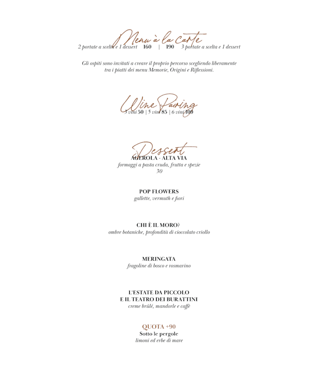 Memorie Menu€160 per guest