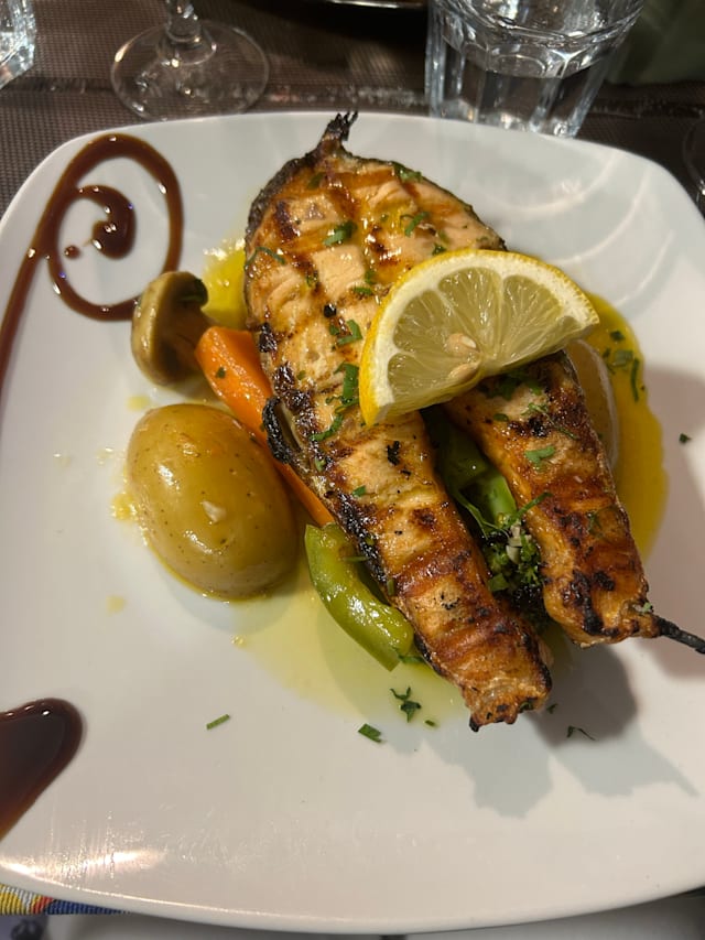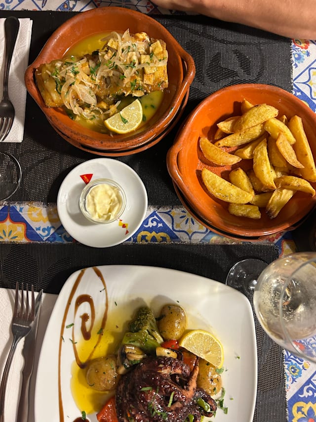 2.5/10octopus was small, salad was poorly cut, wine was too strong and it was a full glass of wine without the possibilitzy to have 0,1 or 0,2. And also wine was not clear therefore a bit weird. My friend sat next to a stroage of all salts and peppers which also kills the vibe. Waitresses were asking every 5 minutes if everything is fine (which i didn´t like) From the good things - they offered us olives & bread and a shot of ginja for free.
