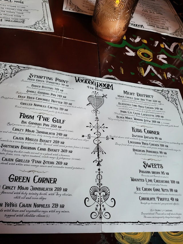 If you plan to eat at Voodoo Room, the average price should be around SEK 300. The average price is calculated based on appetizer/entrée or entrée/dessert, excluding drinks. Prices have been provided by the restaurant.