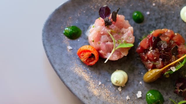 Battuta di manzo fassona piemontese, salsa tonnata, scaglie di tuorlo d’uovo marinato, prezzemolo e sale maldon