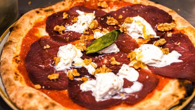 Sauce tomate, fiordilatte di agerola, bresaola, stracciatella, noix et basilic