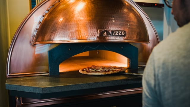 Sauce tomate, fiordilatte di agerola, mortadella, burrata, pistaches de sicile et basilic