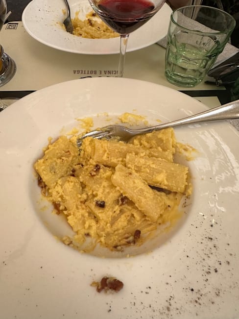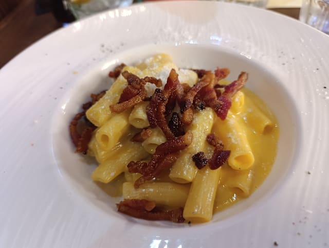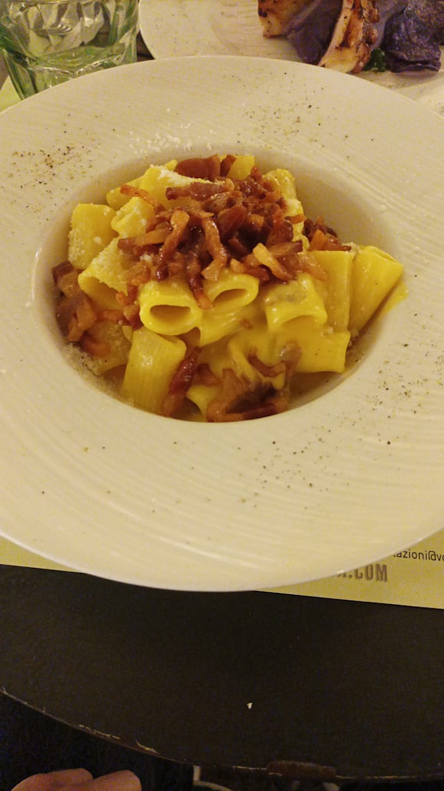 2.5/10We took 2 carbonara and fiori di zucca. The egg in carbonara was basically became an omelette and it wasn’t eatable at all. We complained to the owner and later we saw that he was angry too chefs saying that it was horrible but in anyways he made us paid that horrible plate. Fiori di zucca was undercooked. Everything was overpriced. I completely not recommend this place.