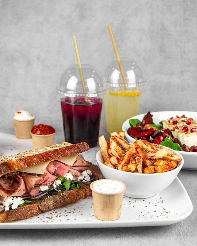 - Farsbiff, blandsallad, gurka, rodlok, ugnsbakad citronpotatis, tomat, tzatziki, ladolemono dressing