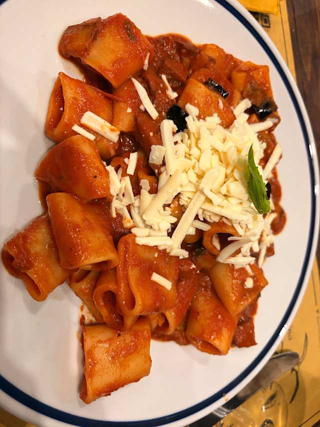- Mezzo pacchero con calamari, carciofi e ricotta fresca