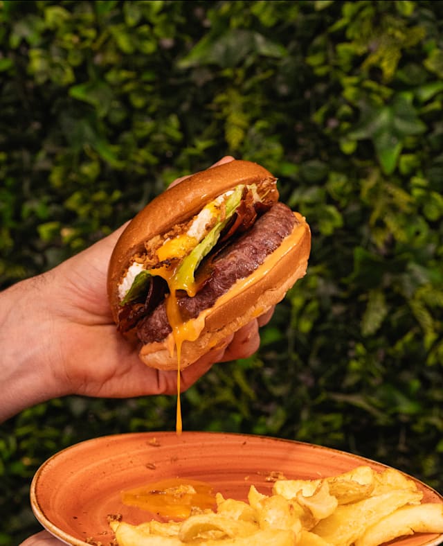 - Doble patty de 90grs, doble de queso monterrey jack, bacon crujiente y nuestra salsa smoked.