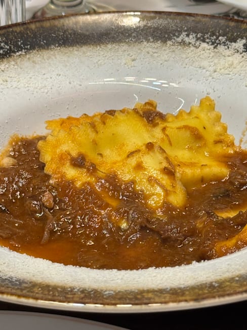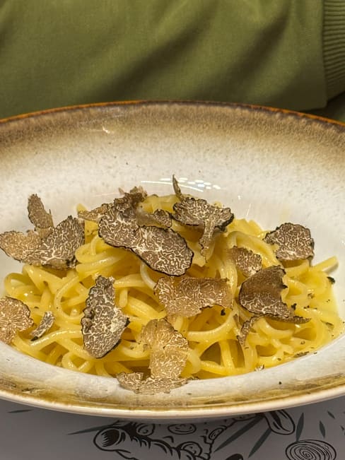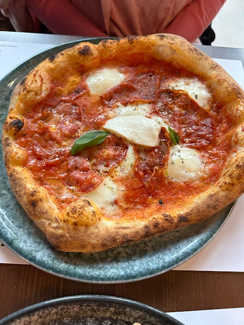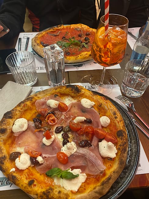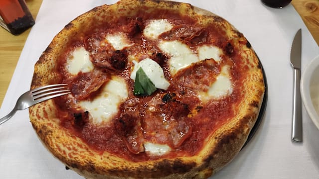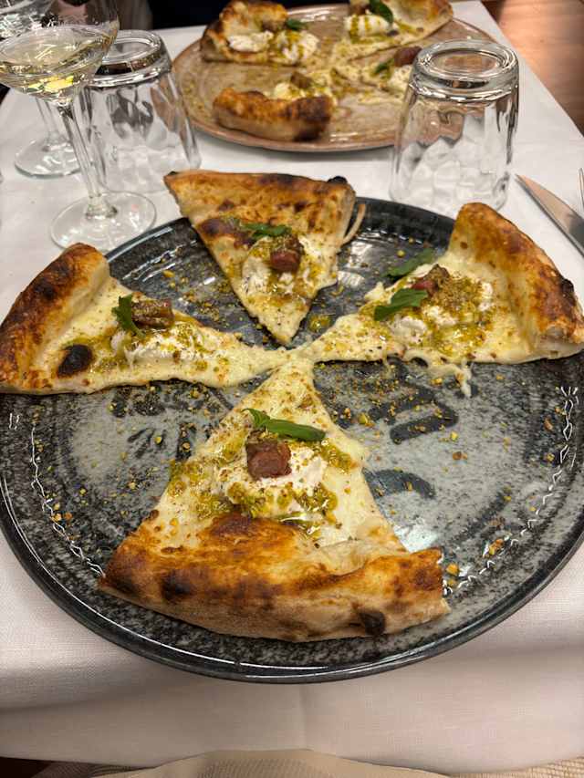 9.5/10+1Our experience at the restaurant exceeded expectations. Service was generally good, though one waiter occasionally forgot items we ordered. The food was fantastic, with a varied wine selection that suits any taste. The pizzas were particularly memorable; I highly recommend the one with wild boar mortadella and smoked burrata—a unique and flavorful choice. The burrata with ragu and ravioli starters were also excellent. Although the beef main course was a bit disappointing, the restaurant was happy to add extra truffle slices upon request. Conveniently located near the exhibition grounds, the restaurant also has a parking area right in front, making it easily accessible. Overall, it’s a great spot with delicious food and a comfortable ambiance.