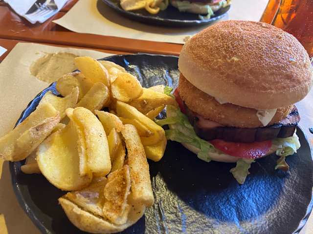 - Burger Vegetarian con rosti, verdure grigliate, pomodori, insalata e maionese, accompagnato da patatine fritte