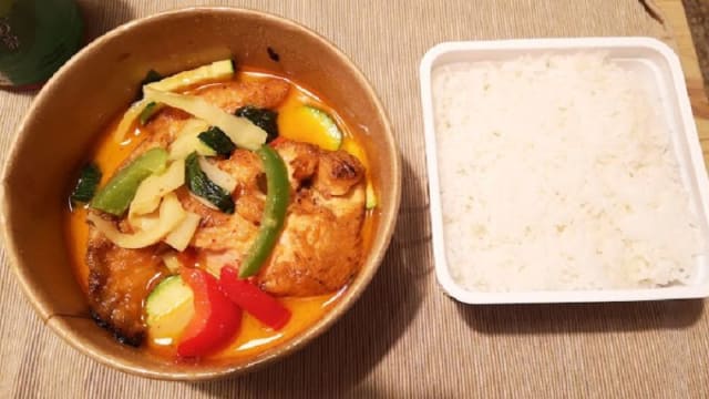 Soupe au lait de coco, citronnelle et champignons accompagnée de crevettes / poulet / tofu