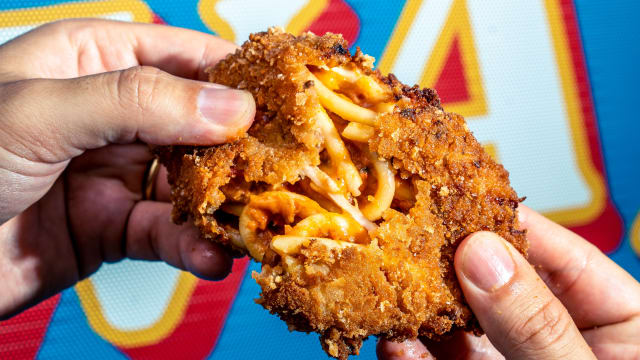Pancia di maialino nero casertano cotto a bassa temperatura, fior di latte campano e all'uscita patate fritte croccantissime e salsa cheddar