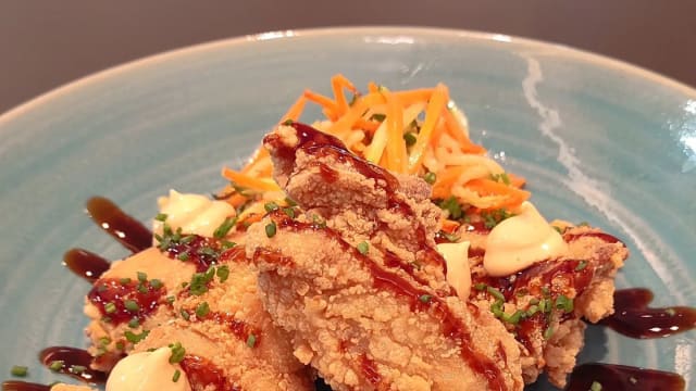 (hecho en dos cocciones, lacada con salsa tonkatsu)