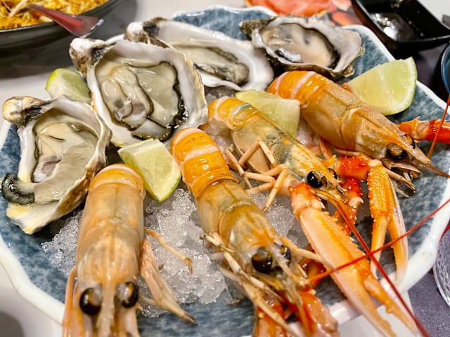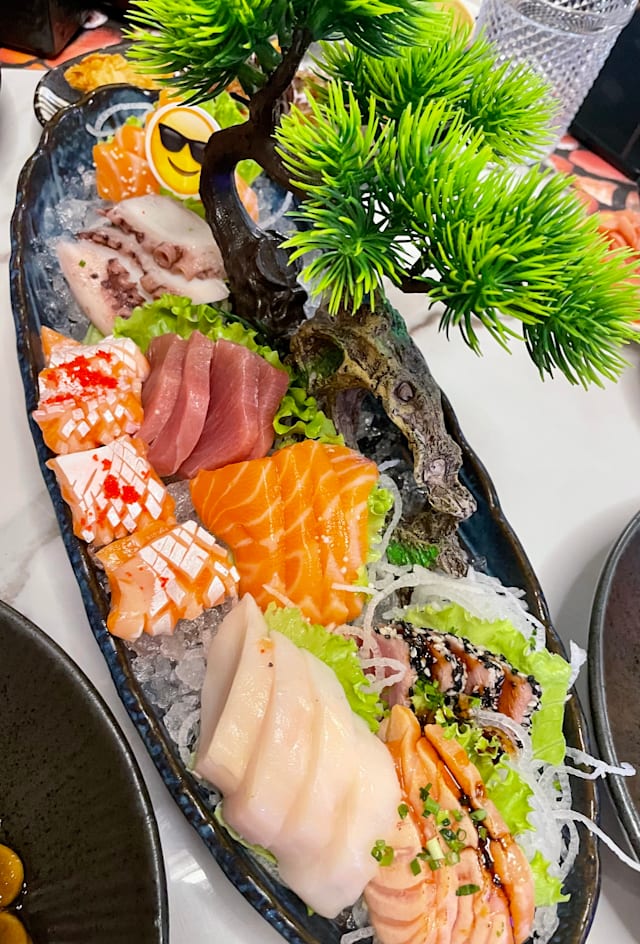 9/10Salmon sashimi is really good, avoid profiteroles it just tastes like frying oil. mango mochi is good.