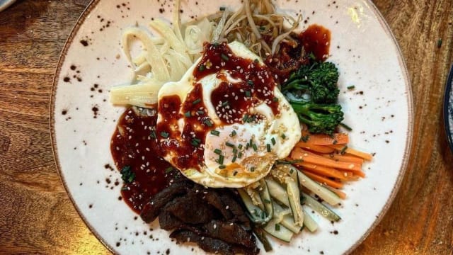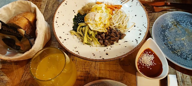 Muy buenas Tai Cho, no entendemos bien tu valoración ni el comentario. En ningún momento durante tu cena mostraste que algo no te gustara o estuvieses mal. Te dimos la mesa grande que elejiste, aún siendo dos personas para qie tuvieseis más espacio y comodidad como solicitaste Pediste palillos y te los facilitamos, cuando pediste salsa Sanjang que la usamos como base en nuestras recetas, no la ponemos como guarnición, te la pusimos y gratuita, sin cobrarte ningún extra. Al ser lunes por la noche y a las 20:30, el restaurante estaba super tranquilo y los platos salieron rápido. Lo único que pensamos, es que creyeras que nuestro restaurante fuese de cocina coreana cuando no lo es, es de cocina fusión española y coreana, o que tengas algún prejuicio racial por el origen de nuestro equipo de cocina después de que preguntaras si los cocineros son coreanos. Sinceramente, creemos que no nos merecemos esa puntuación no valoración después de como se te atendió, y menos aún sin explicar el motivo de esa reseña
