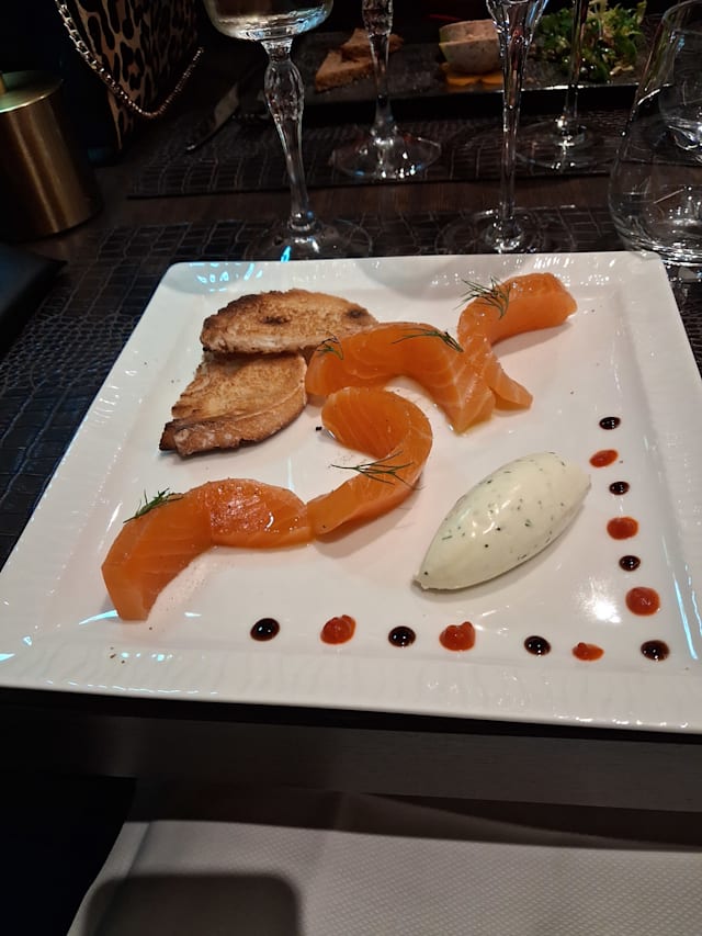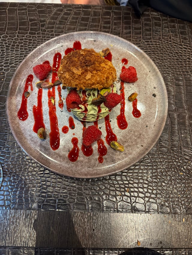 10/10the first thing you observe is the lovely elegant decor in the restaurant. the amuse bouche was tasty. Ours mains and desserts were well presented, fantastic cooking and very tasty. deserts were likewise. The petit four at the end of the meal delicious. All round excellent and good value fine dining.