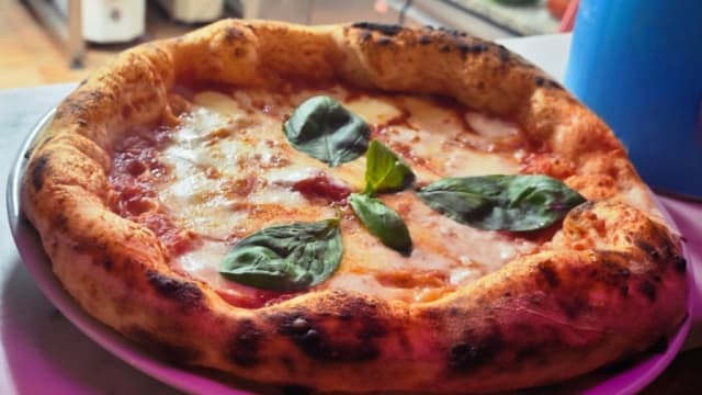 Pizza fritta ripassata al forno con pomodoro san marzano DOP, bufala campana DOP basilico e olio evo